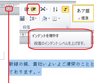 「インデントを増やす」(向かって右側)