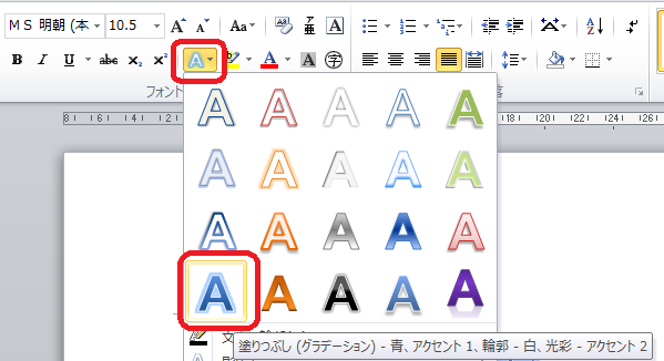 文字の効果のアイコン(Aに効果がついているアイコン)