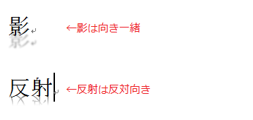 影は向きがそのままの薄い文字が背景に表示されるのに対し