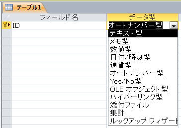 自動的に「ID」フィールドが「オートナンバー型」で作成され