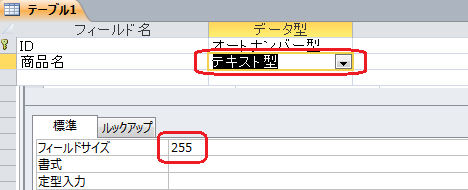 先程フィールドサイズを指定したフィールドに