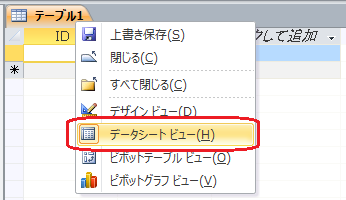 「データシートビュー」にします。