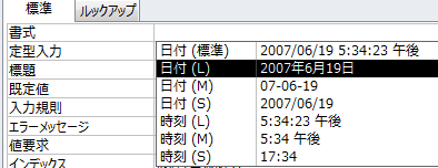 それぞれのデータ型のデフォルトの設定で表示されています。