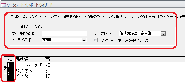 ※今回は「主キーを自動的に設定する」がオンになっている状態で