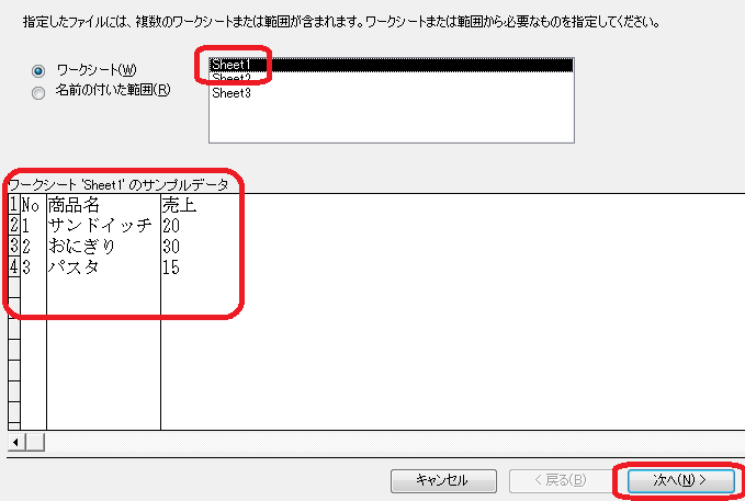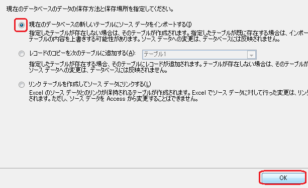 「現在のデータベースの新しいテーブルにソースデータをインポートする」