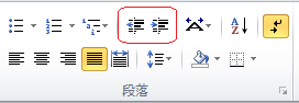 「インデントを増やす」(向かって右側)