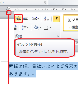 「インデントを減らす」(向かって左側)