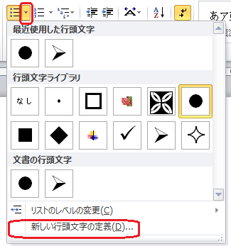 さらに「新しい行頭文字の定義」をクリックし