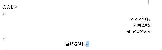 「書類送付状」を中央揃えにしていますが