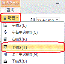 図形の上の線に合わせて図形の全ての図形の上の線が揃います。