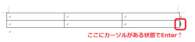 一番右下のセルの外でカーソルを点滅させた状態で