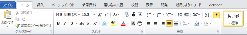 まずリボンのタブの部分をご覧ください。