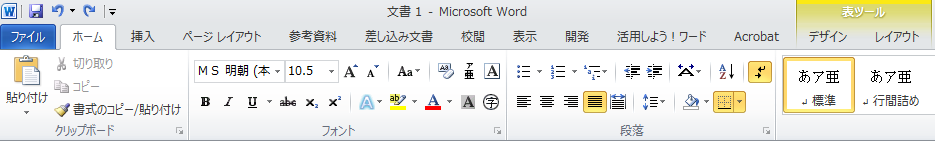 表ツールが表示されたタブ
