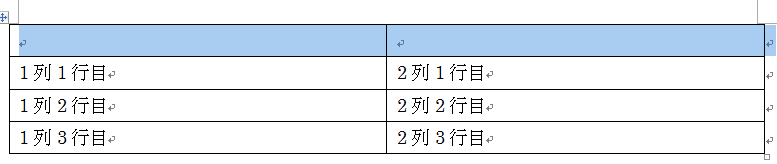 1列1行目が線選択されている状態で