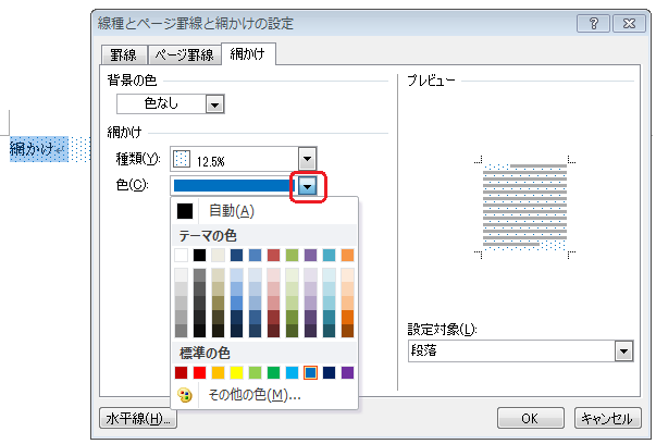 網掛けの設定対象は右下の▼をクリックして