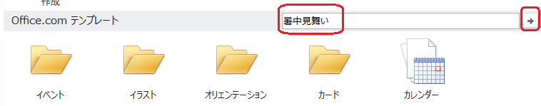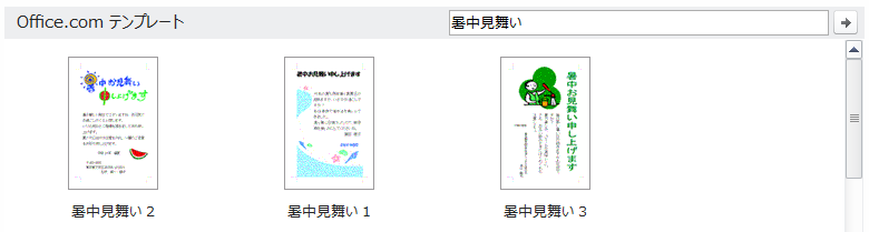 「暑中見舞い」と入力し「→」をクリックするか