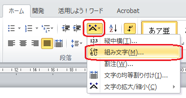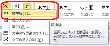 表示された中から「縦中横」をクリックします。