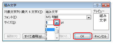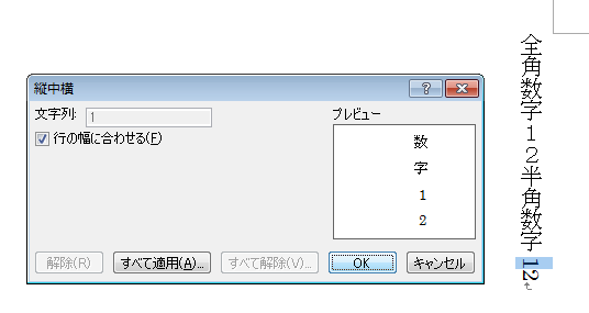 「縦中横」ウィンドウが表示されるので