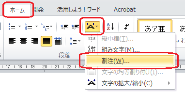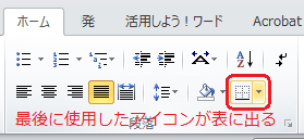 ホームタブ、段落グループの
