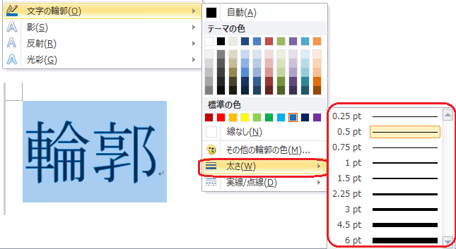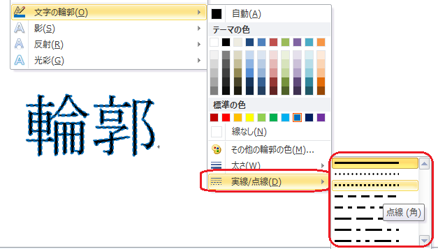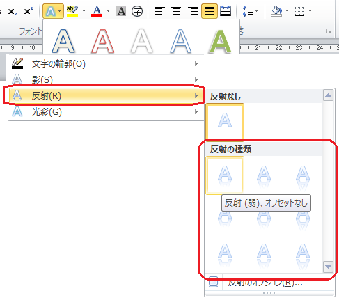 文字の効果のアイコンをクリックして