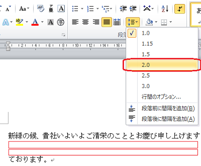 ここでは、1行目と2行目は一つの段落。