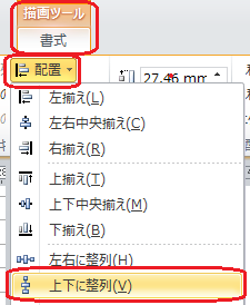 図形の上の線に合わせて図形の全ての図形の上の線が揃います。