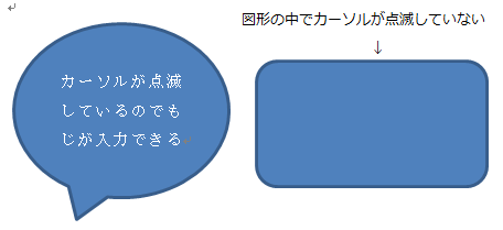 それでは、初期設定でカーソルが点滅していない図形に