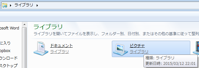「ドキュメント」「ピクチャ」の場合は「ライブラリ」