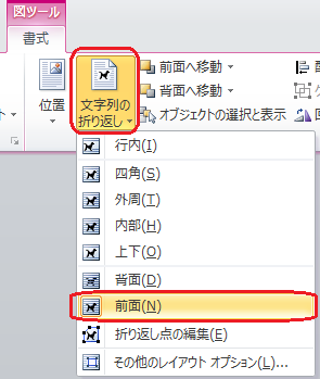 文字の折り返しを「行内」から変更する必要があります。