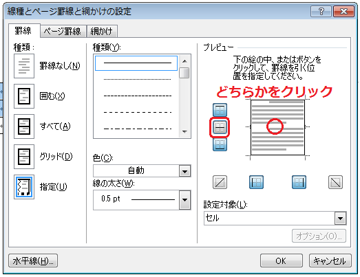 「罫線とページ罫線と網かけの設定」ウィンドウが表示されます。