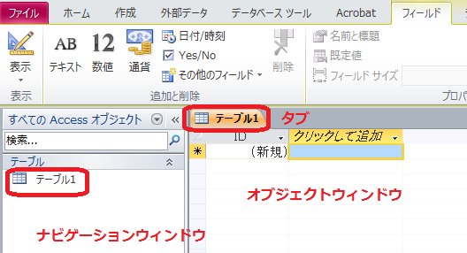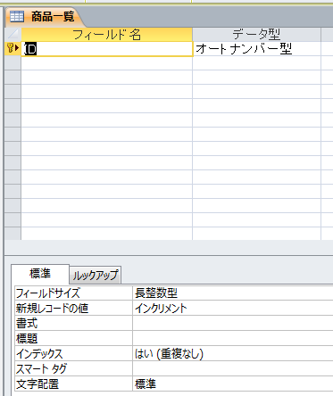 自動的に「ID」フィールドが「オートナンバー型」で作成され