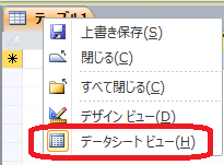 データシートビューとデザインビュー
