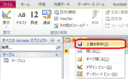 テーブルをデータシートビューで開いた際の