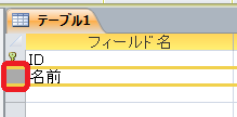 「主キー」に設定したいフィールドの左隣をクリックします。