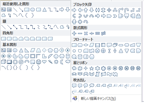 下に表示される一覧より目的の図形を選択します。