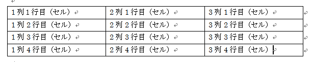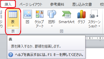 表にしたい段落を選択し「挿入」タブの「表」をクリックし