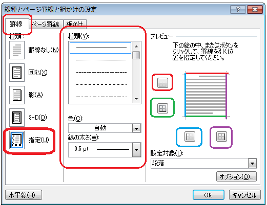 「罫線とページ罫線と網掛けの設定」