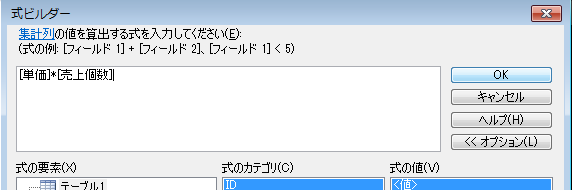 標準タブの式に、先程式ビルダーで入力した数式が入っています。